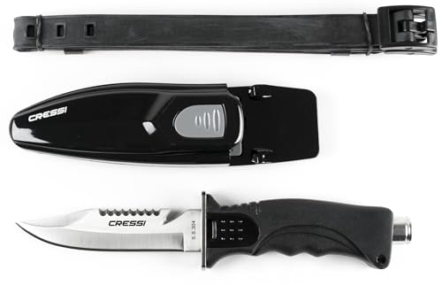 The Cressi Skorpion Knife features a durable, corrosion-resistant stainless steel blade. Its ergonomic handle ensures a secure grip underwater. This knife offers excellent precision and reliability for cutting ropes and safety tasks during dives.