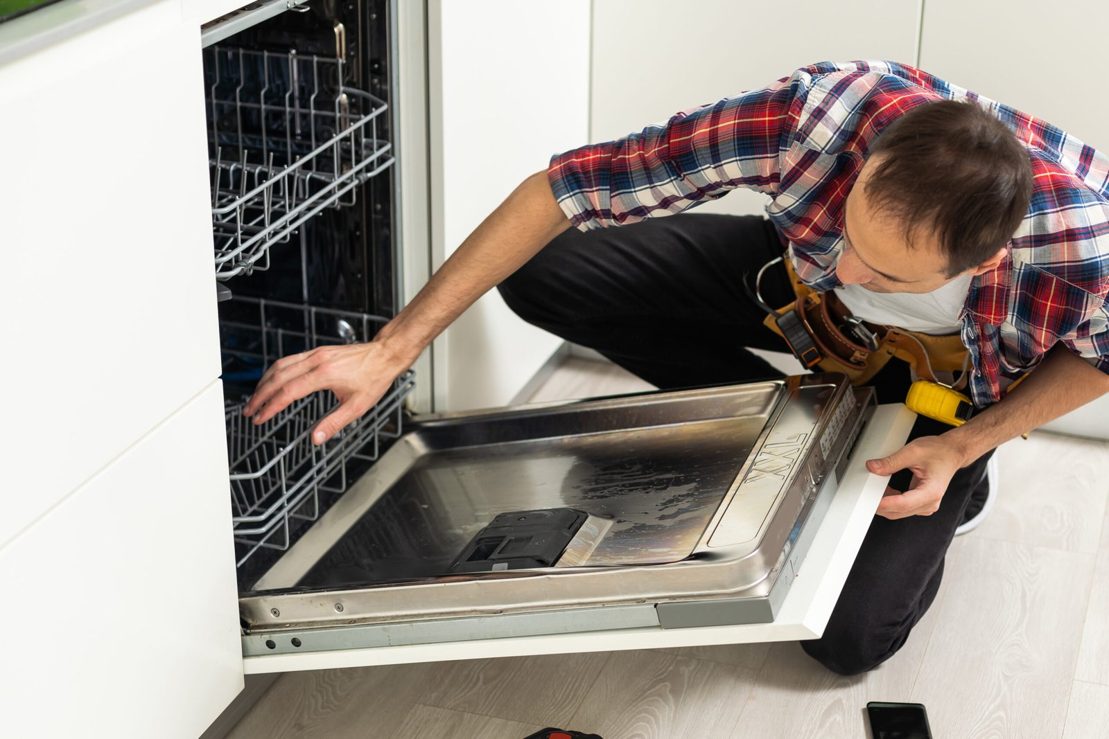 Basic hand tools are essential for most dishwasher repairs. A screwdriverhelps remove panels and screws. A wrenchor pliers may be needed to loosen nuts and bolts. A flashlight makes it easier to see inside the dishwasher.